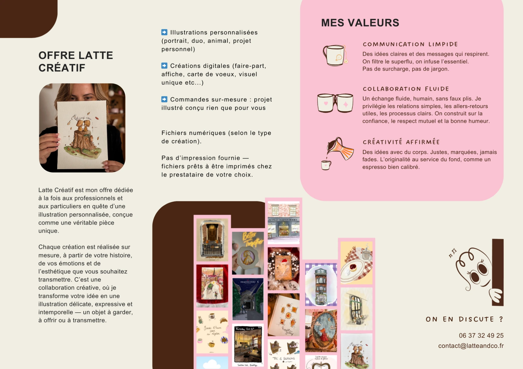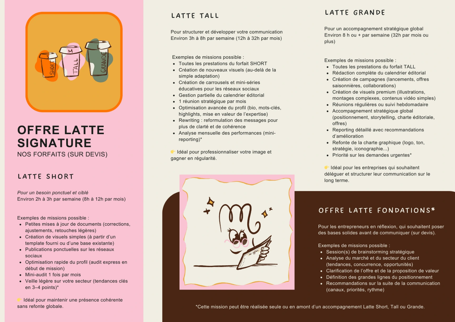 Chez Latte&Co, la collaboration est fluide, claire et bienveillante. Chaque projet démarre par une vraie discussion : vos besoins, vos objectifs, vos envies. On établit un cadre, un planning et des livrables précis pour avancer sereinement, ensemble. Parce qu’un bon projet repose sur la confiance et la clarté.